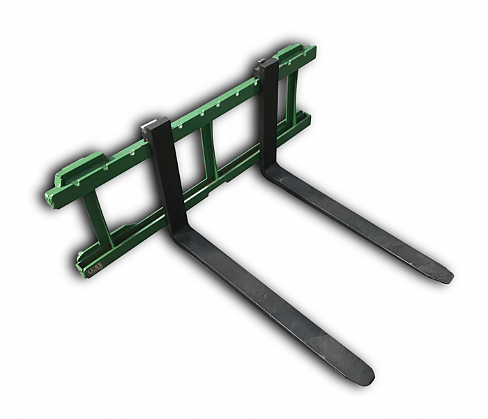 Berlon BLD PFF-48 48" and BLD PFF-42 42" Class II pallet fork sets, 2,500 lb. capacity, weigh 275 lbs., forks are 4" wide X 1⅜" thick X 48" and 42" long, have universal SSL Q-tach plates. Pallet forks & mount plates are all USA made. List @ $975. We have three 48" and two 42" fork sets in stock.