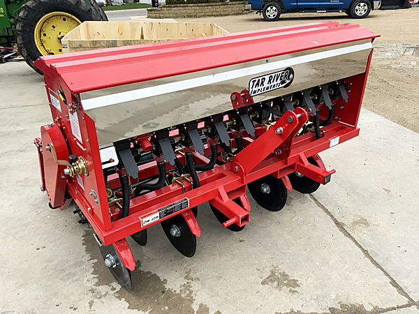 Description: New Tar River DRL-072 6-foot conventional 3 pt. drill/crop seeder, 10 double disc openers, CAT I/II 3 pt., two stainless steel boxes with closeable slides for each row, can apply fertilizer to each row while planting, working depth ¾" to 2", combination rolling basket, drag and rear roller, 6" spacing, minimum of 20 HP required. Weighs 625 lbs. Includes dealer setup/pre-delivery and factory freight to dealer. Lists @ $5,160 including freight and setup. Note: All six seeders have been sold, but we have a new unit on order. Please call for details. 03/18/2026