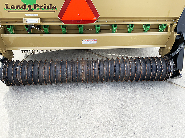Description: Used Land Pride APS1572 6-foot all-purpose seeder, 6-bushel capacity, 10 fluted seed cups, two 8" diameter spiked rollers, can angle rollers from 0 to 20 degrees, rear spring-loaded roller, operator manual, weighs approximately 836 lbs. Like new, low-usage unit, serviced through our shop.