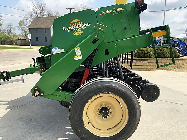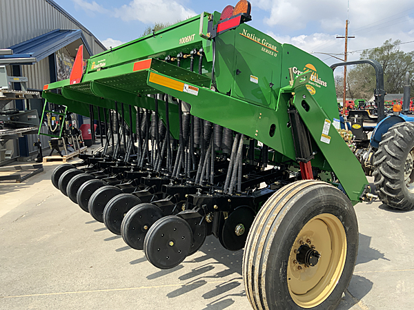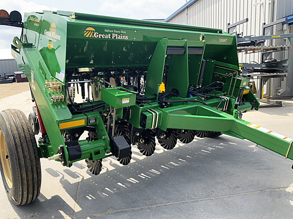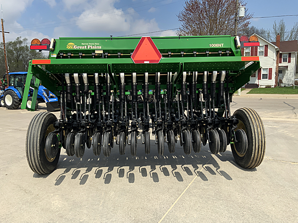 Description: New Great Plains 1006NT Native Grass Series II 10' pull type end-wheel no-till drill, 7½" row spacing, 2" X 13" single press wheels, ⅝" turbo no-till coulters, clevis hitch, Seed & Series II Native Grass small seeds (total of three individual boxes), walk board, standard tongue with jack, transport lights, acre counter, four-speed gear box, seed gauge, grease bank. Lists @ $60,885 plus freight and setup. Note: Both no-till drills have been sold, but we have a new unit on order. Please call for details. 04/03/2026