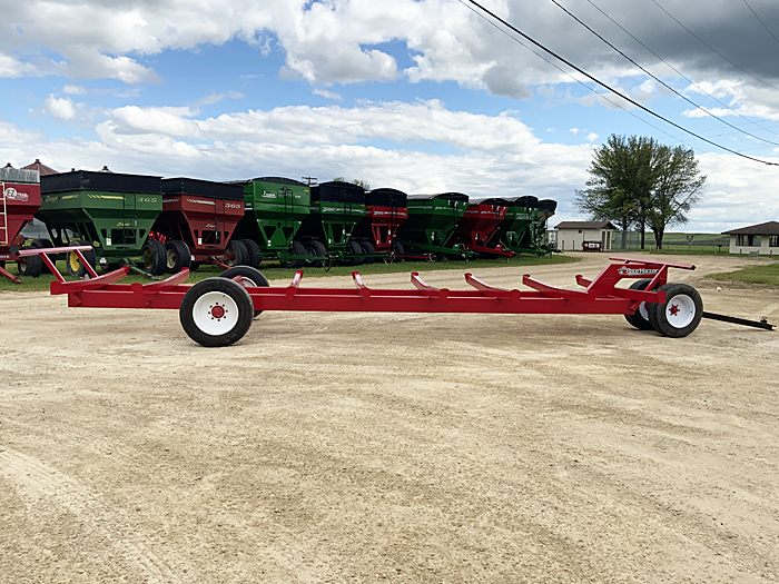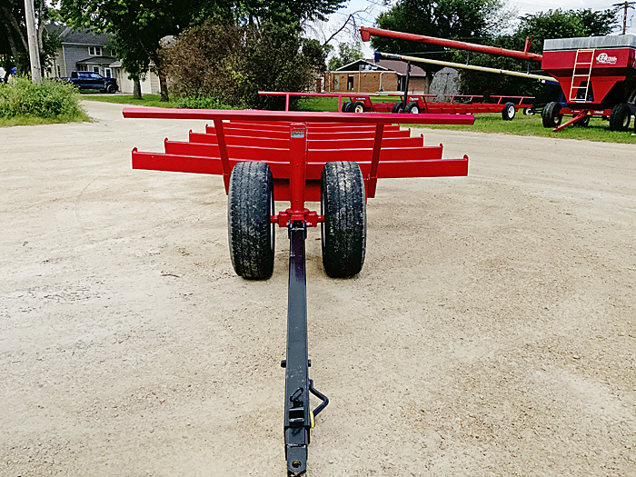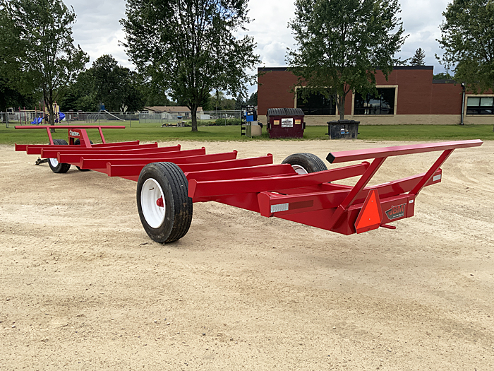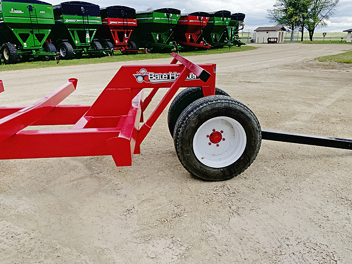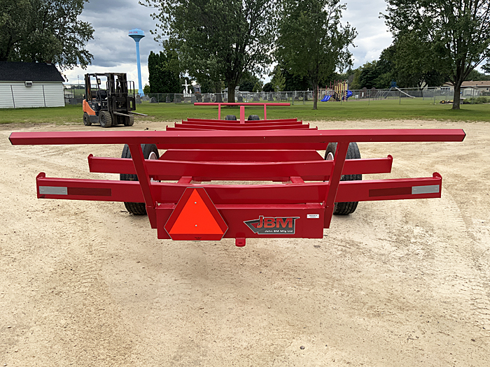 Description: New JBM (John BM Mfg.) Mighty Bale Hauler 141939 round bale transport, 8.5 feet wide X 24 feet long, 245/70R19.5 14-ply rear tires, 8-bolt solid plate center rims, 245/70R17 10-ply front tires, 6-bolt solid plate center rims, greaseable front and rear wheel hubs, telescoping tongue, SMV sign, 8-bale capacity or 20,000 lbs., red color. New model. We have two one unit in stock and a new unit on order. Please call for details. 03/28/2026