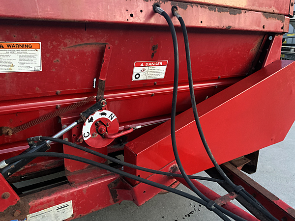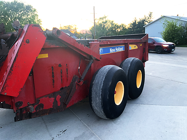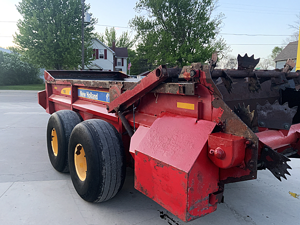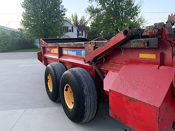 Description: 2014 New Holland 195 tandem axle box manure spreader, mechanical apron with hydraulic speed control, dual pintle apron chains, hydraulic endgate, splash guard, upper beater, 1,000 PTO (can be converted to 540), 16.5Lx16.1 10-ply flotation tires. Reconditioned through shop.