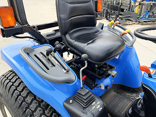 Description: 2003 New Holland TC33D compact tractor, 4wd with Super Steer front axle, R3 front and rear turf tires, tilt/telescopic steering column, folding ROPS, cruise control, one set rear remote hydraulics, set of front remote hydraulics with flat face couplers for use with grapple, 3 pt. Cat I quick hitch, New Holland 7308 loader with SSL quick attach 60" bucket, joystick loader valve, loader S.N.: YL324332. Tractor has 621 actual hours.