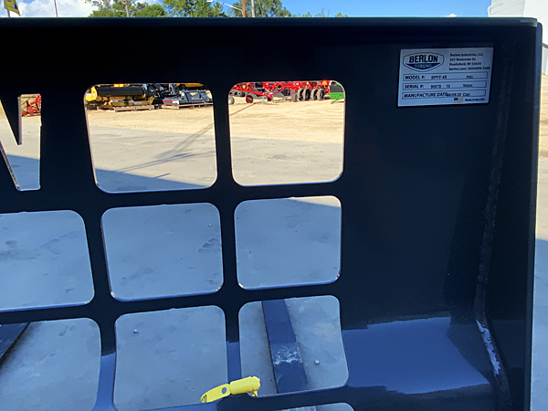 Description: Berlon BPFF-48 4,000 lb. 48" pallet fork set, Euro Q-tach mount plate, full width brick guard, step on both sides. Forks built in the U.S. Note: This pallet fork set has been sold, but please call for current price and availability of a new unit. 01/04/2023