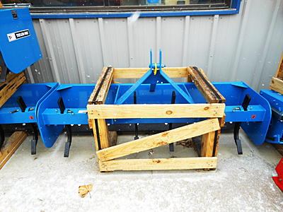 Description: New Taylor Pittsburgh 233-BB-G-66-BX 66" 3 pt. box blade, five pin-adjust scarfier teeth, two 6" X 1/2" thick bolt-on reversible cutting edge, Cat I 3 pt hitch allows usage of Cat I 3 pt. tractor quick hitch, New Holland blue color. Weighs 546 lbs. Note: This box blade has been sold, but please call for current price and availability of a new unit. 01/06/2022
