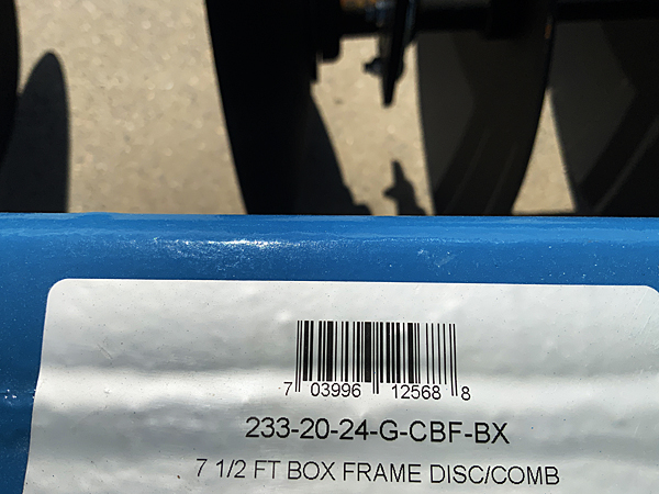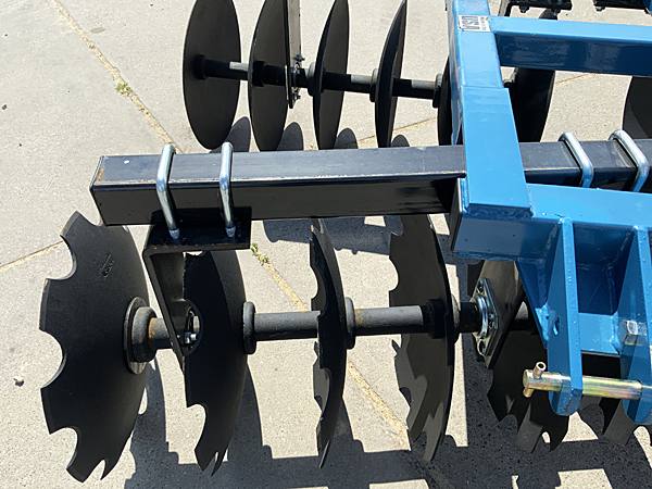 Description: New Taylor Pittsburgh 233-20-24-G-CBF-B 7½' 3 pt. disk, 20" cutaway front blades, 20" solid rear blades, 7½' blade spacing, 3" square box frame, adjustable front & rear gang angles, weighs 1,012 lbs, requires 45 hp to 75 hp, Cat I quick hitch compatible. Note: All three disks have been sold, but additional units are available. Please call for details. 08/23/2025