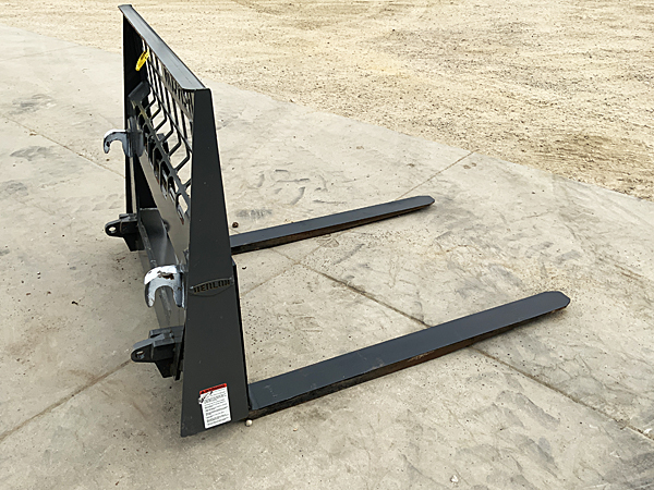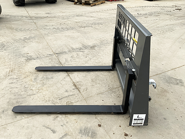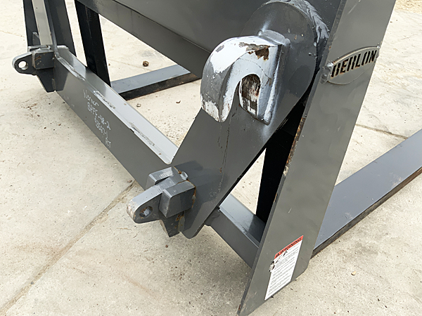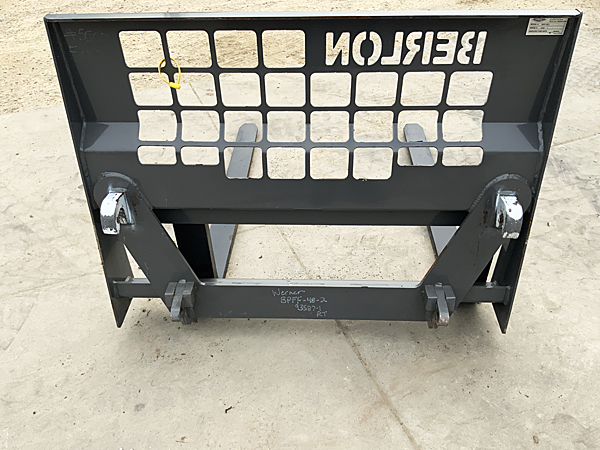 Description: Berlon BPFF-48-2 5,500 lb. 48" pallet fork set, Euro Q-tach mount plate, full width brick guard, step on both sides. Forks built in the U.S. We have four one unit in stock. 06/03/2025