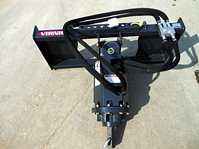 Virnig ADV36 SSL post hole auger drive unit with planetary gear reduction with 2" hex output shaft. Weighs 350 lbs. Complete with hoses and flat-face couplers (less auger bit). Auger bits available in sizes from 6" to 36" diameter. A 12" bit (#SAV12) lists @ $790; a 24" bit (#SAV24) lists @ $1,455. Drive unit lists @ $4,190.
