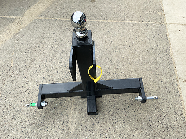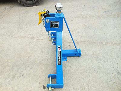 New Ideal TMSD trailer mover, includes 2 5/16" ball on top for gooseneck trailers and a two inch receiver on the bottom. CAT I lower pins, lower receiver hitch optional (not included). 3,000 lb lift capacity.