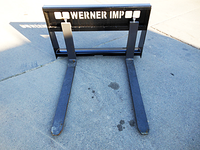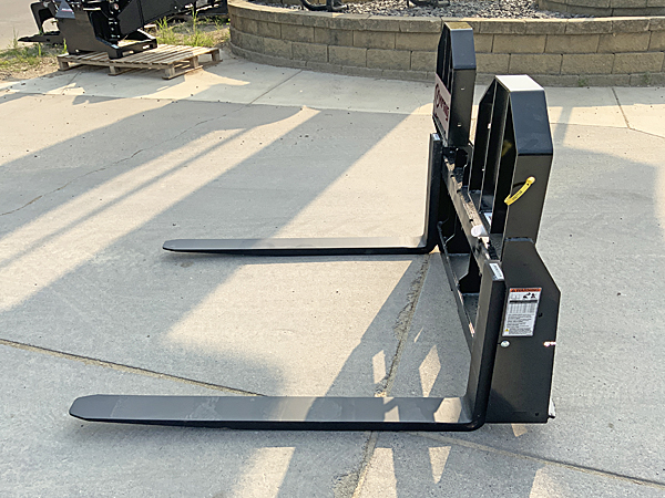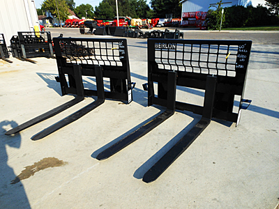 Berlon BLD PFF-48 48" and BLD PFF-42 42" Class II pallet fork sets, 2,500 lb. capacity, weigh 275 lbs., forks are 4" wide X 1⅜" thick X 48" and 42" long, have universal SSL Q-tach plates. Pallet forks & mount plates are all USA made. List @ $975. We have three 48" and two 42" fork sets in stock.