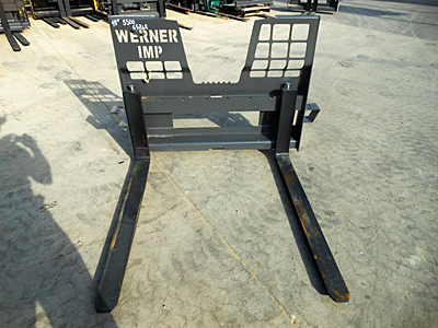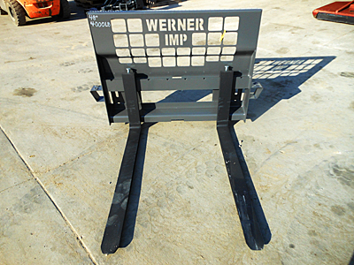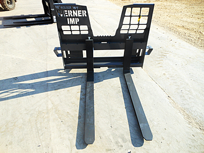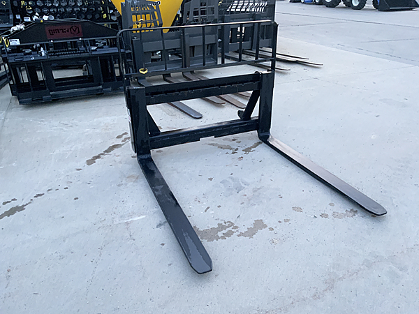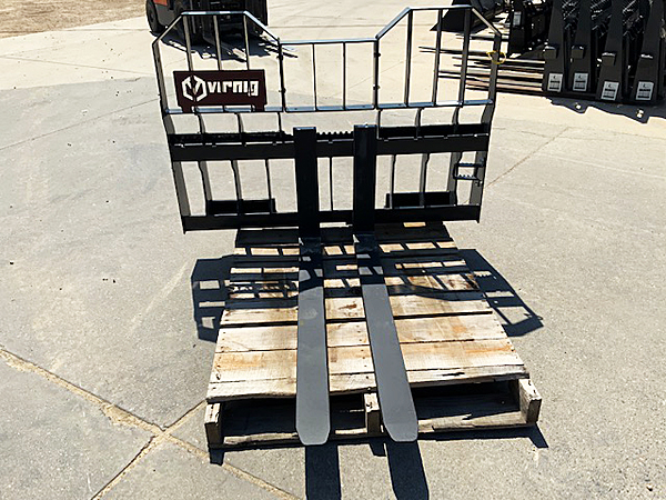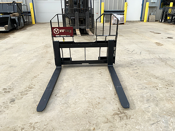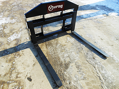 New Virnig PF4222CT V30 2,200-lb. compact tractor pallet fork set with universal SSL mount plate, fork set includes tines that are 42" long by 3" wide by 1.19" thick. Weighs 265 lbs. Lists @ $1,085. All U.S.-made, including the forks. We have five units on order.