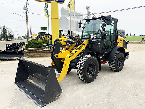 '26 New Holland W70C HS compact wheel loader, high speed, block heater, deluxe cab with air seat/auto ride control, single auxiliary high flow, 405/70 t20 Goodyear tires, LED lights (2 front/2 rear), 1.57 cubic yard LM bucket.