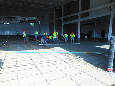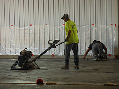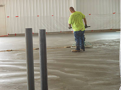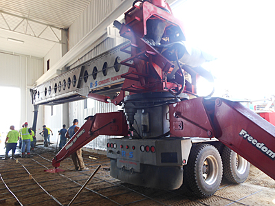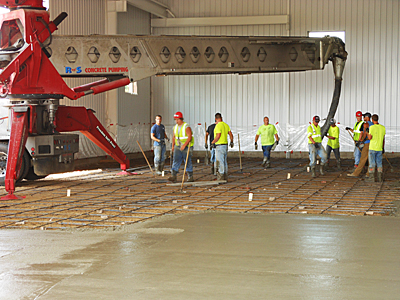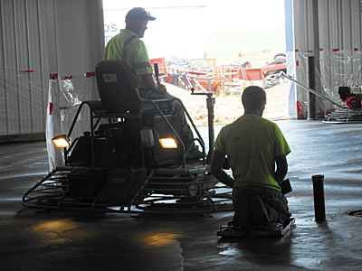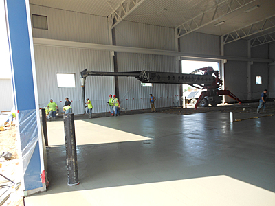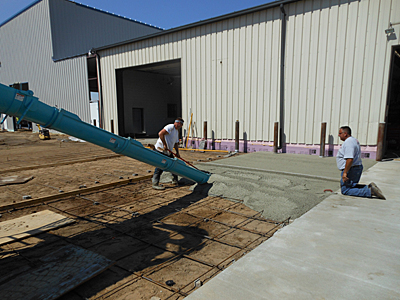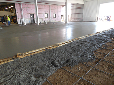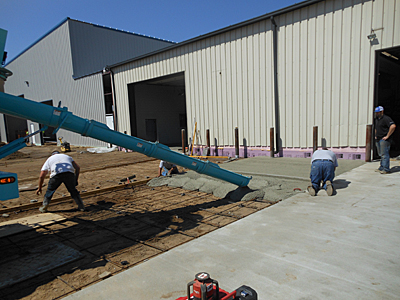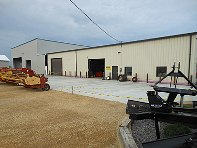 Werner Implement, Inc. | 119 Main Street East | Vermillion, MN 55085 | 651.437.4435 | 1.800.770.4634 This is the fifth page of photos in our construction album. By the second week in June, a 40' wide concrete pad was being poured on the east side of the old and new buildings. Meantime, crews were busy preparing the new building for a concrete floor, including burying power lines and installing a floor drain system. At the same time, the entrance area of the old building was being stripped bare in preparation for the new front. Other workers continued to wrap the old building with new metal siding. On June 17, crews began pouring a thick slab of concrete in the new building. Concrete trucks dumped their loads into a huge machine that pumped the slurry to the far ends of the building, eliminating the back-breaking job of hauling it by carts. Workers then leveled the concrete, then used hand and power trowels to give the floor an exceptionally smooth surface. Meantime, a worker gave the concrete-filled steel protective posts along the east wall of the building a fresh coat of yellow paint. Photos on this page were taken in mid June 2015. To simplify viewing, we've created pages, much like a photo album. The link to the next page is on the bottom of each page. Next page of photos | |