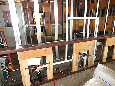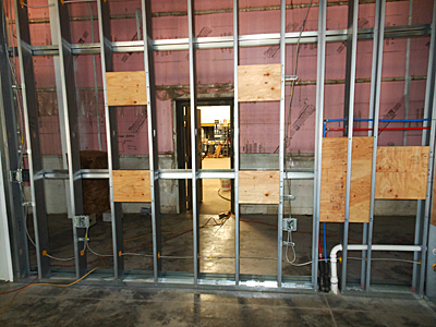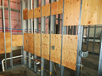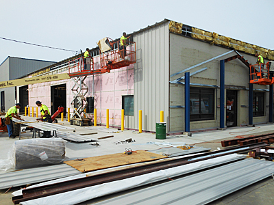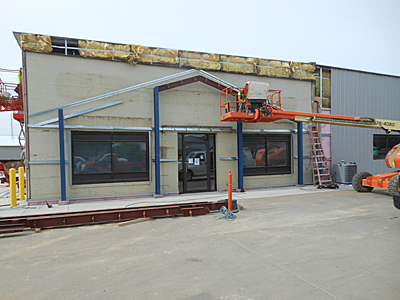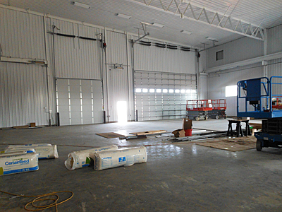 Werner Implement, Inc. | 119 Main Street East | Vermillion, MN 55085 | 651.437.4435 | 1.800.770.4634 This is the sixth page of photos in our construction album. By mid June, the front entrance and east wall of the old building were stripped to the original brick exterior. Foam insulation was fastened to the east wall and workers began work on the new entrance. At the same time, work on the concrete pad on the east side of the building continued, with crews replacing the black dirt with sand fill and then packing it. Then the final sections were poured. A crew from the gas company installed a larger line into the building to meet the higher heating demand and a new gas meter and the air conditioner were reconnected. Inside, carpenters began building interior walls for the lunch room, mechanical room and bathrooms. Once the metal studs were in place, electricians and plumbers performed their magic. Carpenters also installed wooden blocking in various locations so they can eventually serve as fasteners for the cupboards, sinks and other items. Workers also installed the large overhead garage doors. Photos on this page were taken in late June 2015. To simplify viewing, we've created pages, much like a photo album. The link to the next page is on the bottom of each page. Next page of photos | |
