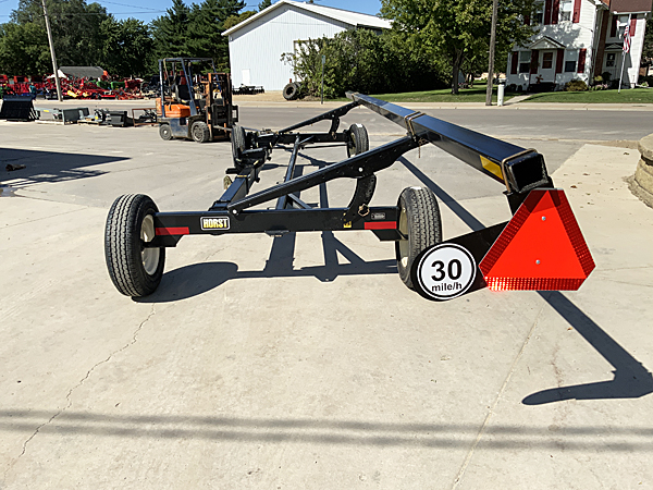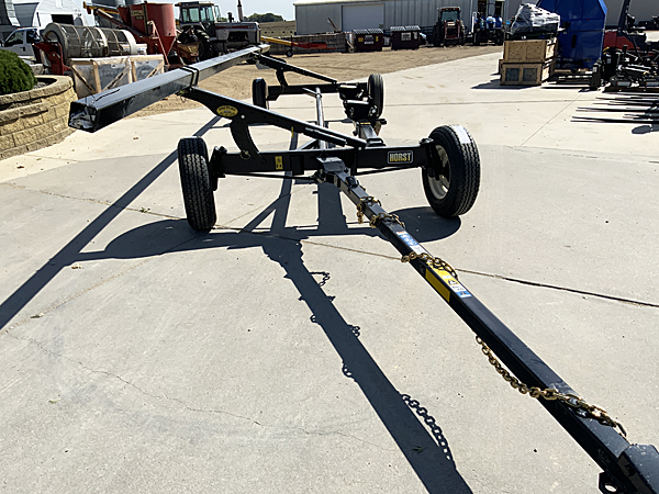 Description: New HLA Horst CHC30 30-foot header trailer, set of four 225/75R15 LRD highway speed tires, 18' wheel base, 31' top rail, black color, rated 10,000 lb. capacity, adjustable tongue length 11' 3" to 12' 9". Lists @ $9,315 with setup and factory freight to dealership. Note: This header trailer has been sold, but please call for current price and availability of a new unit. 05/03/2022