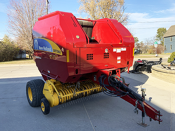 Description: 2014 New Holland BR7060 round baler, Bale Command with twine, net and bale slice,1.8m XtraSweep pickup with hydraulic lift kit, 18L-16.1 SL 10-ply tires, 540 rpm CV PTO, bale bumper, transport lights, safety tow chain. Serviced through our shop. 8,414 bale count. Very sharp, clean baler.