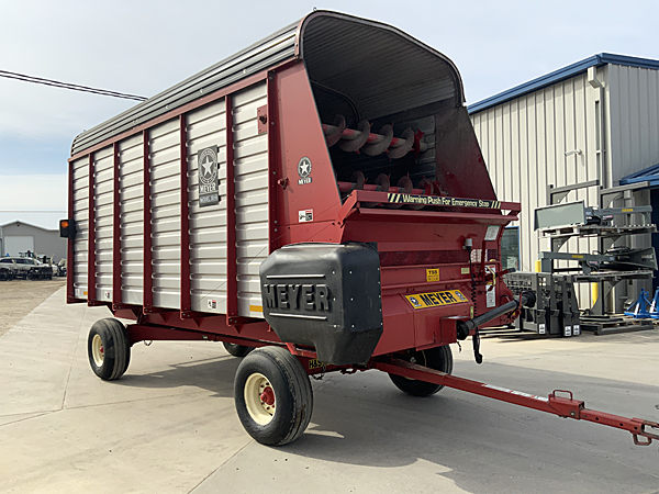Used Meyer 3516 16' chopper box, dual apron chains with left hand unload conveyor, variable speed unload, road light kit, 540 PTO, box is on H&S 12-ton running gear model #HS-412m, 12.5LX15 Good Year tires on 8-bolt rims. Serviced through the shop.