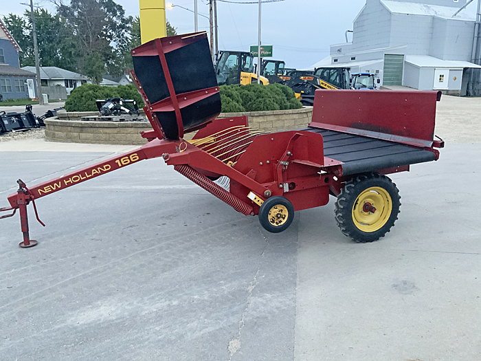 Used New Holland 166 windrow inverter, 6-bar pickup, dual pickup wheels, good conveyor belt. Very sharp. Serviced through our shop. Field ready.