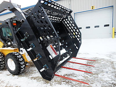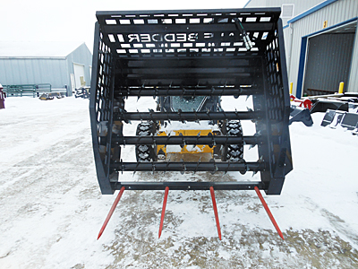 Description: New Silver-Star BDR Hydraulic 72 72" SSL bale bedder/grinder for 4' and 5' round bales up to 6' diameter. Also can be used with up to 8' long big square bales. Four rotors with an hydraulic Orit motor on each rotor. Four-tine loading fork. Click here to view bale bedder in action. Note: This bale bedder/grinder has been sold, but additional units are available. Please call for details.