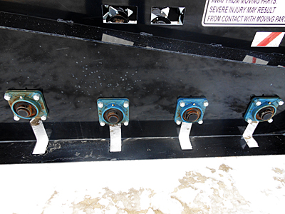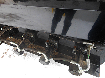Description: Also available with single Orbit motor with sprocket chain drive on rotor. Description: Also available is the Silver Star Metals model BDRSQ96 three-auger big large square bale bedder/shredder, inside width 110". Complete with hoses and flat face couplers. Please call for details.