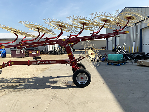 Description: New Sitrex QR12 12-wheel wheel rake with individual floating wheels. Tractor power 50 hp, total weight 2,115 lbs. With or without center kicker wheel. Max working width 24'6". Tire size 205-75/15. Note: All three rakes have been sold, but additional units are available. Please call for details. 05/23/2025