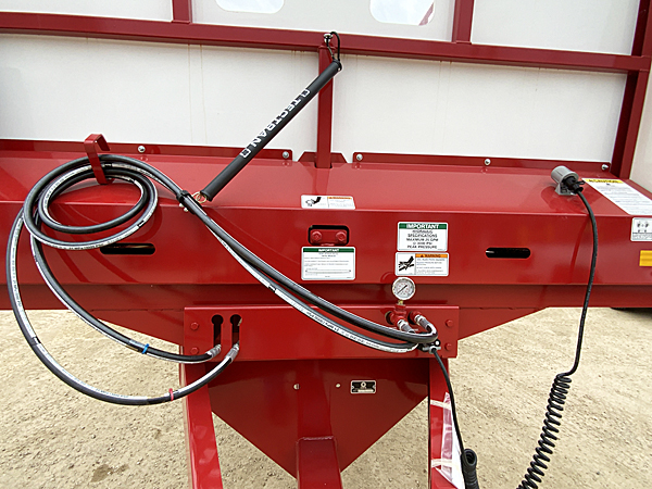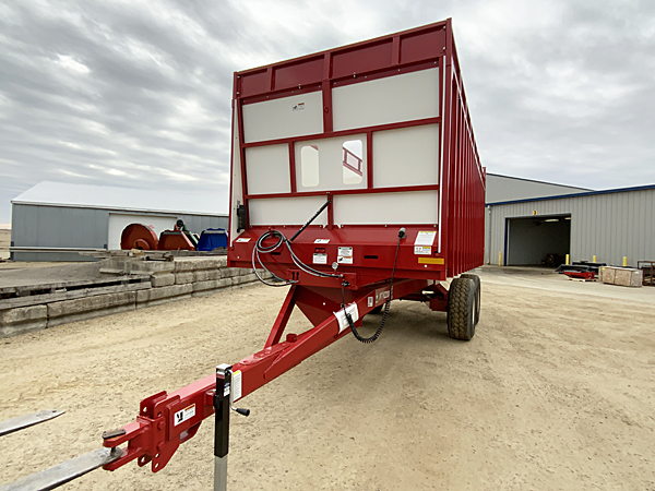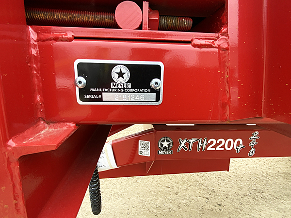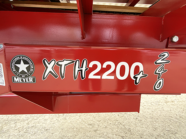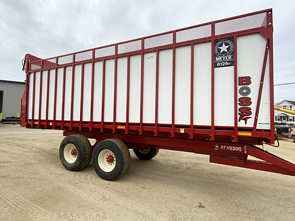 Description: 2023 Meyer 8124-H-RT 24' hydraulic gear drive rear unload forage box, dual 667XH apron chains, (no roof), LED light package, fiberglass woven plywood sides, solid poly floor, trailer mount kit includes hydraulic hoses and male ends, light hook up cord and holder, gate delay system, 14" height extension screen. XTH2200+ 22 ton tandem trailer, heavy duty clevis hitch, set of four used 425/65R22.5 tires mounted tubeless on 22.5X13" 10-bolt rims. Note: We sold both forage boxes, but additional units are available. Please call for details.