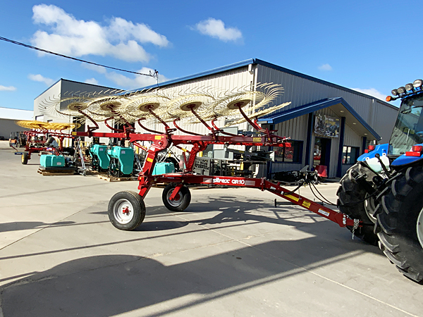 New Sitrex QR10 10-wheel wheel rake with individual floating wheels. Tractor power 30 hp, total weight 1,875 lbs. With or without center kicker wheel. Maximum working width 21'. Tire size 205-75/15. We have three units in stock.