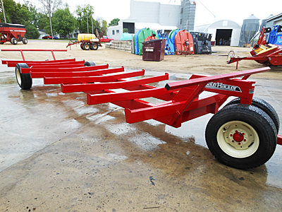 New Notch 10BT 10-bale round bale transport with 2BT cradle (increases transport capacity from 10 bales to 12 bales), used 23580-22.5 front tires, used 385X22.5 rear tires, rear transport light package. Red color. Maximum capacity 22,000 lbs. Lists @ $9,540.