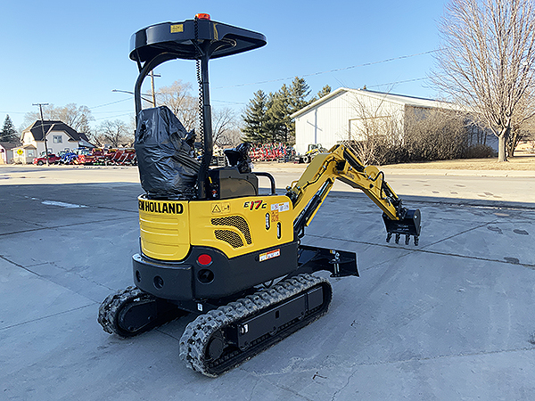 Description: New New Holland E17C compact excavator, 3 cylinder Kubota 16.8 gross hp engine, 2-speed (speed 1=1.4 mph, speed 2=2.5 mph), rubber tracks, track width hydraulically adjustable from 38" to 51", 2-way joystick, canopy open air station, long arm pack, LED working lights. Weighs 3,910 lbs. Also comes with a 18" heavy duty bucket.