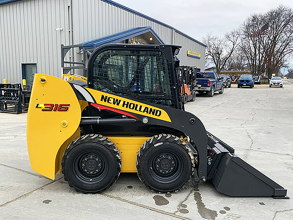 Description: New New Holland L316 SSL, 1-speed, mechanical hand/foot controls, cab with heat, air ride suspension cloth seat, lap bar, floor mat, standard hoods & covers, hydraulic Q-tach coupler, block heater, 10X16.5 heavy duty tires (59 OTW) 66" low profile extended bucket with bolt-on cutting edge. Note: We sold the L316 we had in stock, but please call for current price and availability of a new unit.