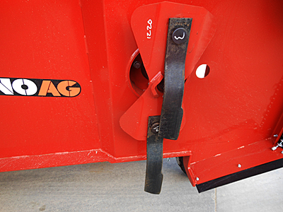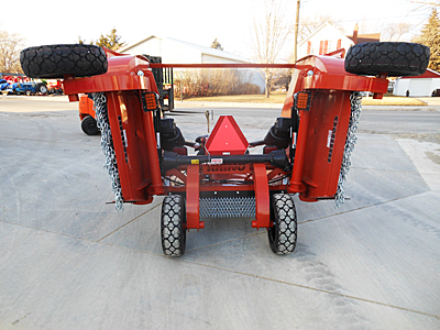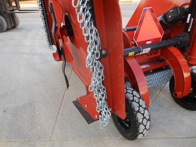 Description: New Rhino TS12 12' flex-wing cutter, 540 slip clutch PTO, 1/2" X 3" blades, Rhino orange color, 1½" maximum cut diameter, cutting height 2" to 12", front & rear chain guards, new units will have a set of six 6" X 9" X 20.75 laminated tires (one extra tire on each rear axle), tires, LED transport light package. Requires one remote valve on tractor. Requires 35 to 60 hp tractor. Complete with freight/setup and pre-delivery. Weighs 2,750 lbs. Lists @ $25,565 with setup and freight. We have five one unit in stock. 08/16/2025