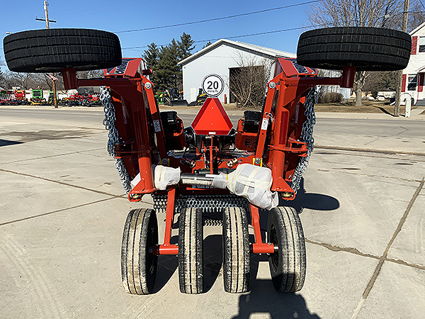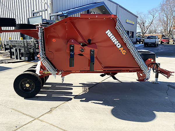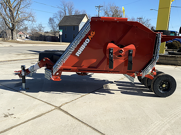 Description: New 2024 Rhino TS10 10' flex-wing pull-type rotary cutter, requires 25 to 60 PTO hp. 2" cut capacity. Cat 4 540 PTO with slip clutch. Safety tow chain. Rhino orange color. Set of six 6" X 9" X 20.75 laminated tires. Chain guards on front and rear. Weighs approximately 2,190 lbs. List @ $22,460 including factory freight and setup. 2-year base warranty/7-year gearbox warranty. We have three one unit in stock. 02/21/2024