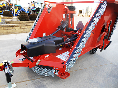 New Rhino 3150-4 15' flex-wing cutter, Cat 5 1⅜" 1,000 CV PTO, standard pivoting tongue hitch, front and rear single chain guards, set of six 25.6" X 7" X 18" Rhino Trax foam filled tires (eight tires are optional; call for details), 3" cut capacity, 1/2" X 4" blades. Requires minimum of 50 PTO hp, 160 hp gearbox rating, safety tow chain, LED transport light package, Rhino orange color, tongue jack, weighs 5,310 lbs. Lists @ $35,625.