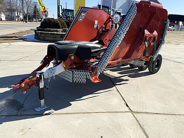 New Rhino TS12 12' flex-wing cutter, 540 slip clutch PTO, 1/2" X 3" blades, Rhino orange color, 1½" maximum cut diameter, cutting height 2" to 12", front & rear chain guards, new units will have a set of six 6" X 9" X 20.75 laminated tires (one extra tire on each rear axle), tires, LED transport light package. Requires one remote valve on tractor. Requires 35 to 60 hp tractor. Complete with freight/setup and pre-delivery. Weighs 2,750 lbs. Lists @ $25,565 with setup and freight.