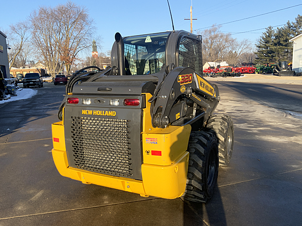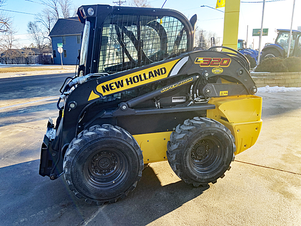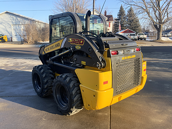 Description: Used 2022 New Holland L320 skid steer loader, cab with heat/AC/radio/lap bar/air ride suspension seat, hydraulic attachment plate, 2-speed with E-H controls, LCD display, front electric multi-function, engine coolant heater, standard flow auxiliary hydraulics, 12-16.5 heavy duty tires, 78" low-profile extended bucket with bolt-on cutting edge, 867 one-owner hours. Serviced through shop. Balance of factory warranty.