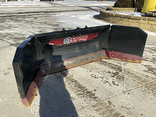 Used Virnig HSBP120 V60 120" hydraulic snow blade/pusher, electric-over-hydraulic control allows independent angling of each wing, three blade sections with individual bottom trip edges utilizing eight total compression springs, side-to-side oscillation & adjustable cast skid shoes, 5/8" X 8" bolt-on cutting edge, 31" blade height. Weighs 1,540 lbs. Recommended loader capacity of 1,800 lbs. or greater. New lists at $12,475. This unit was sold new in August 2023. One owner. Very low usage. Includes ELC14 14-pin control harness.