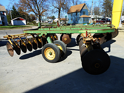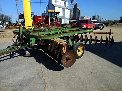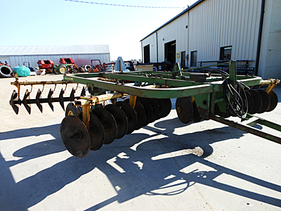 Description: John Deere 210 14-foot disk, 20" front and rear cone blades, all blades excellent. With John Deere black cast iron cylinder. Field ready.