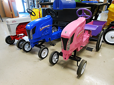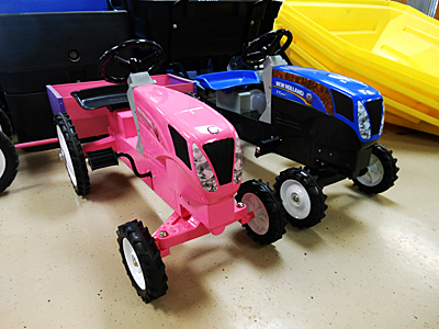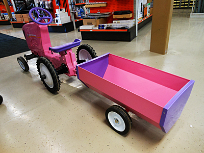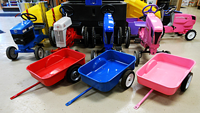Pedal tractor trailers Red model durable plastic body by Scale Models $26.70 Blue model steel body by Ertl $37.84 Pink model durable plastic body by Scale Models $26.70