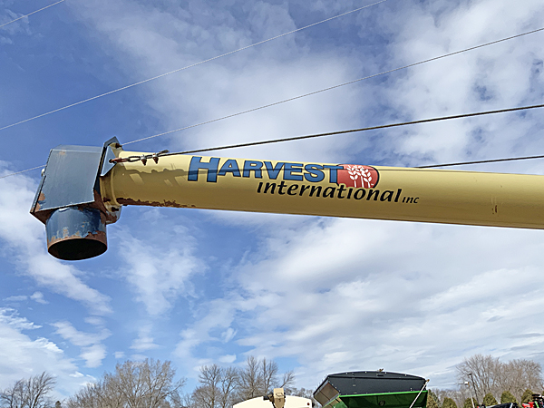 Description: 2011 Harvest International H1062 10" X 62' gear-drive low-profile swing hopper auger, scissor lift transport, 540 CV PTO drive, flat-free hopper tires, very good original flighting. Needs roller chains and bearings replaced on hopper drive.