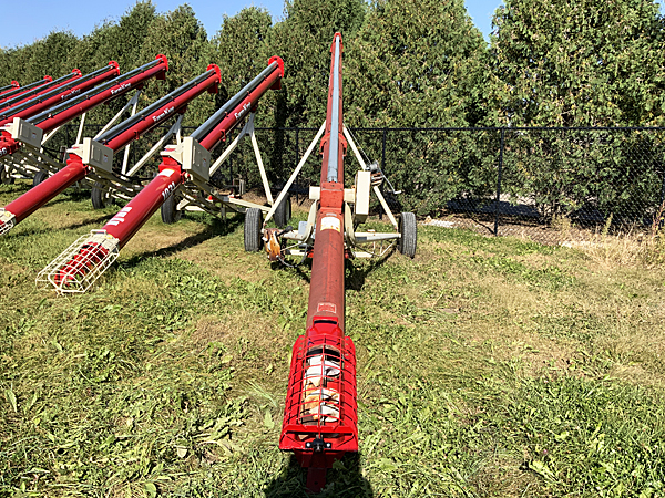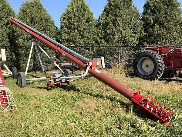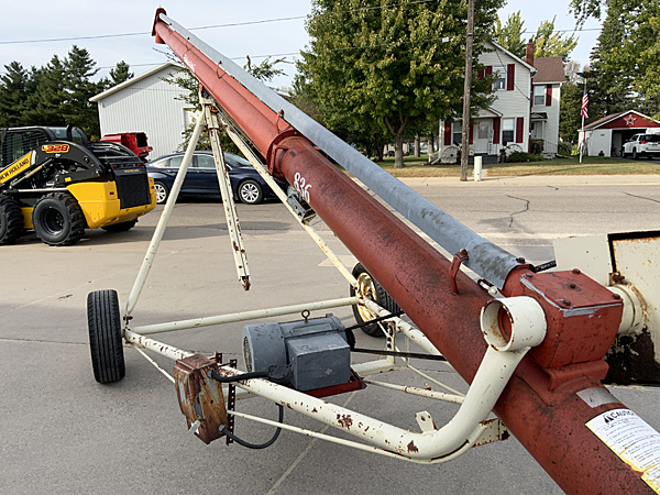 Description: Used Farm King 836 8" X 36' electric motor drive auger, like-new flighting, upper chain drive, GE 10 hp single phase 220V motor with control panel. Good, clean, straight auger. Serviced through shop. Usual paint fade. This auger was sold new by Werner Implement.