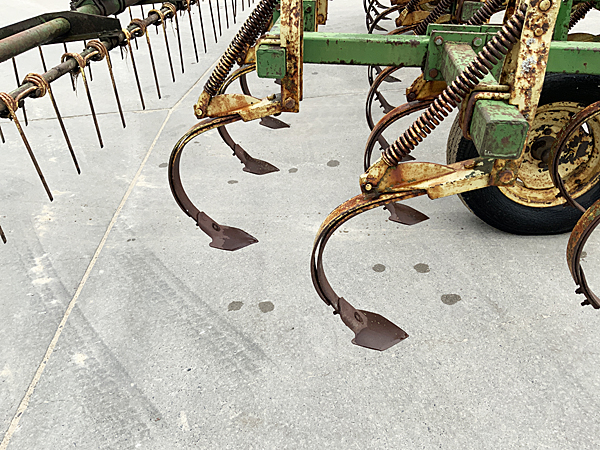 Description: Used Glencoe FC-105 15-foot field cultivator with 2-bar Midwest drag harrow, good shovels. Serviced through shop. Good older cultivator. S.N.: 19298