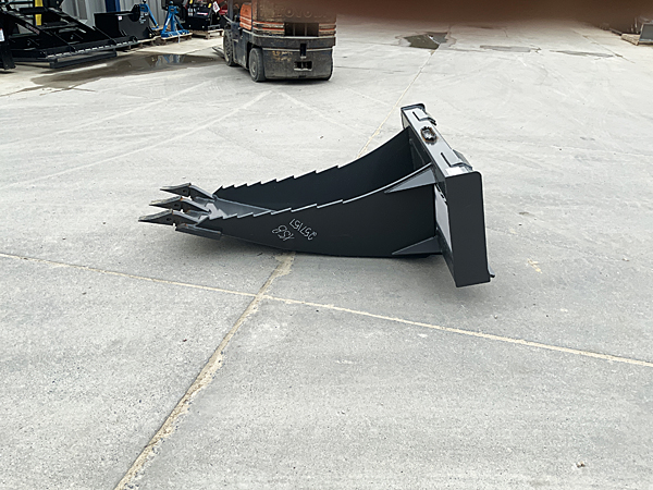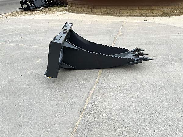 Description: The CID XSB X-treme Skid Steer Stump Bucket is made from ½" top quality steel plate and features a 1" cutting edge with replaceable teeth, 4" x 4" square tube frame, 3" x ⅜" wear bars. It has a curved bottom with ridges cut out on the sides, giving you more leverage and grip when prying up rocks and stumps or digging in harder ground. The X-treme Stump Bucket is a full 12" longer than our Heavy Duty Stump Bucket, which allows you to dig much deeper. The CID stump bucket is an ideal attachment for the landscaping industry, land clearing and construction companies, too. It weighs 424 pounds. We have three two units in stock. 10/09/2024