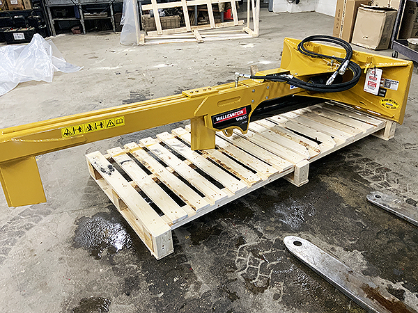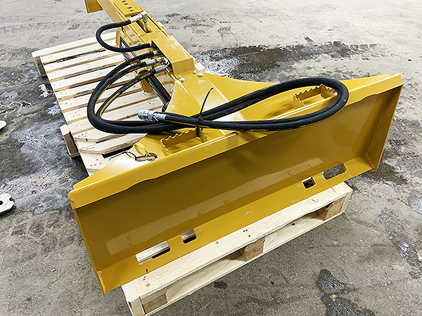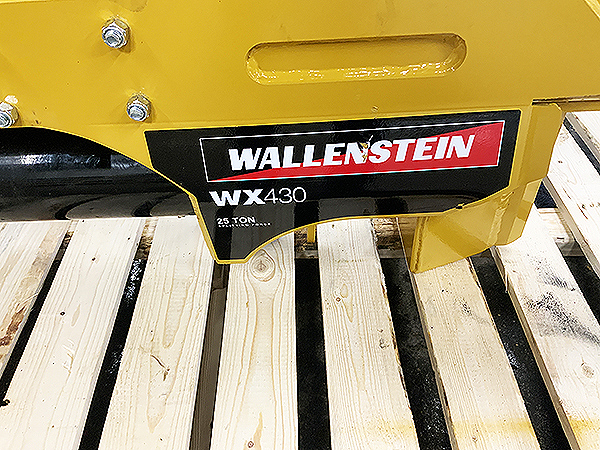 Description: New Wallenstein WX430 25-ton skid steer loader inverted log splitter, 36" splitter opening, 13 GPM recommended hydraulic flow, universal SSL Q-tach plate, hydraulic hoses with flat face couplers, yellow in color. Optional WAL W4130 four-way wedge sells @ $410. We have two units in stock. 03/06/2025