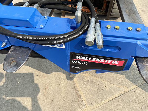 Description: New Wallenstein WX410 20-ton horizontal inverted SSL wood splitter, 4" cylinder, 24" splitter opening, hoses with flat face couplers, blue color, weighs 260 lbs., requires minimum 10 gpm flow. Optional: W4120 4-way wedge available. Sells @ $410. We have one unit in stock. 01/31/2025