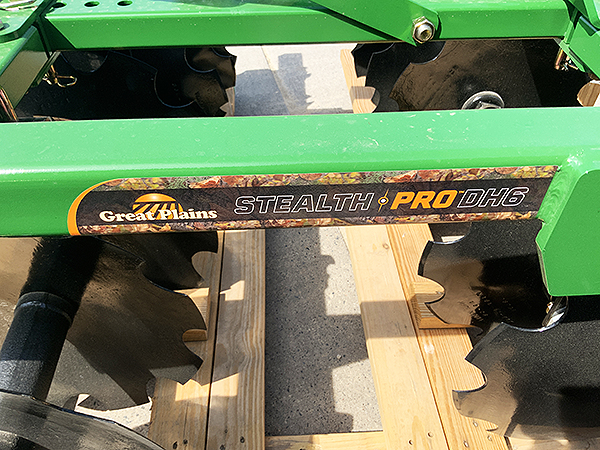 Description: 2025 Great Plains Stealth Pro DH6 6-foot 3 pt. disk, quick hitch compatible, adjustable front and rear gang angles, 18" notched front and rear blades, greaseable gang bearings.