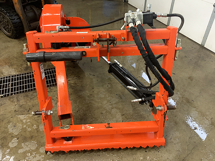 Description: Used Land Pride GR1525 3 pt. mounted stump grinder, Cat I/II hitch, quick hitch compatible, 24" diameter cutting wheel, 30 replaceable cutting teeth, 540 PTO with slip clutch protection, two 3.5" X 16" stroke cylinders with hoses, requires one hydraulic outlet, 10" maximum cutting depth below ground, requires 25 to 55 hp, original operator manual in tube holder. Good, clean, straight unit.