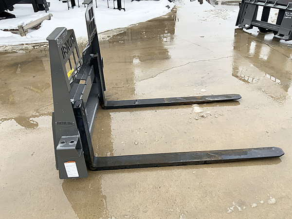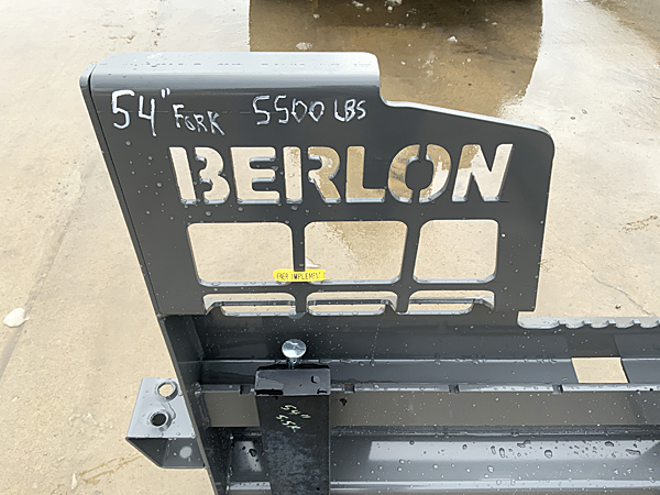 Description: New Berlon WTBPFF-54 5,500 lb. class II walk-through design pallet fork set with 54" forks, forks are 4" wide X 1.56" thick, step on both sides, gray color, universal SSL mount plate, weighs 424 lbs. We have three one unit in stock. 03/21/2026