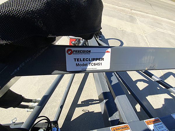 Description: New Precision Manufacturing TC6451extreme duty telescoping tree clipper, fully plumbed with flat-face couplers, 36" telescoping clipper head rotates 180 degrees using wireless remote, universal SSL mount plate. Cut dead or live trees or tree branches. The boom extends the cutting surface up to 10' 3" and will retract to 7' 3". The TC6451 TeleClipper features Precision Manufacturing's strongest clipper head; it has a 12" cut capacity. Also available with a Euro-style mount plate. List at $10,815, plus freight & setup. Click here to see the Precision Manufacturing tree clipper in action.