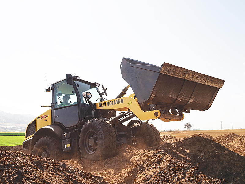 '26 New Holland W70C HS compact wheel loader, high speed, block heater, deluxe cab with air seat/auto ride control, single auxiliary high flow, 405/70 t20 Goodyear tires, LED lights (2 front/2 rear), 1.57 cubic yard LM bucket.