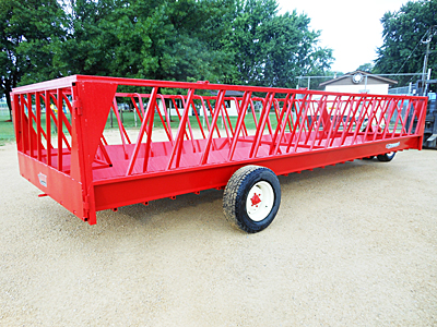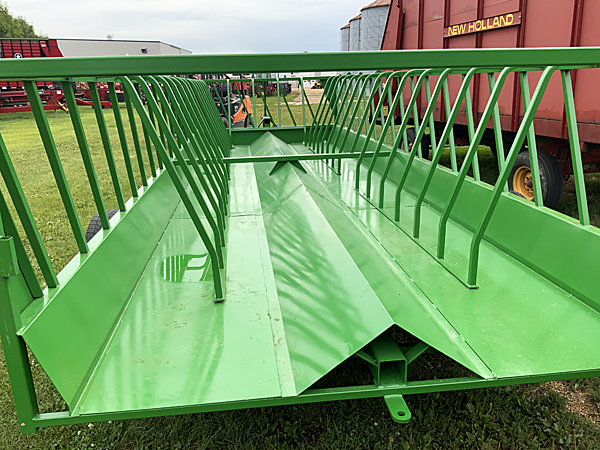 Description: New JBM (Walco) 141407 8-foot wide by 24-foot long Cattleman's Choice feeder wagon with front dolly wheels, 46 feeding spaces, 16" 10-ply used truck tires with new tubes, tow hitch on rear extension tongue, inside double bar hinge open for clean-out, has hinged rear gate. Lists @ $8,215. We have one unit in stock and two new units on order. Please call for details. 03/28/2026